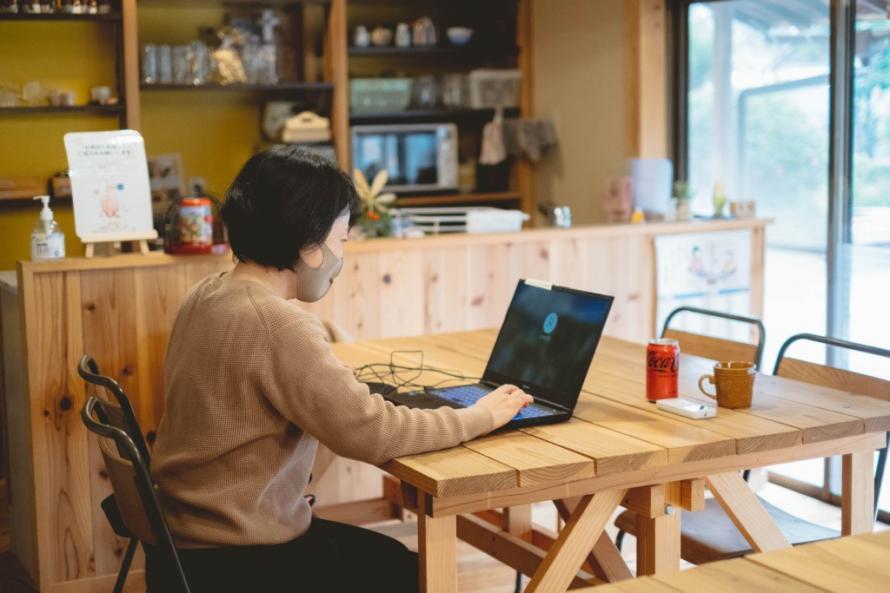 ワークスペースは、主に2カ所。滞在先の「ゲストハウスてま里」でのんびりお庭を見ながら、