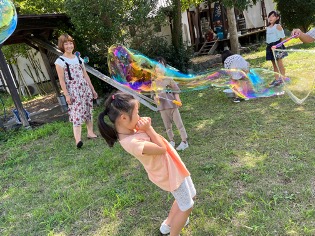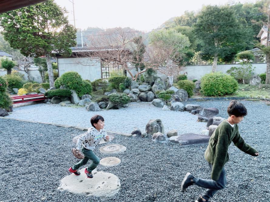 思いっきり走り回れる広いお庭が子どもに大人気です。