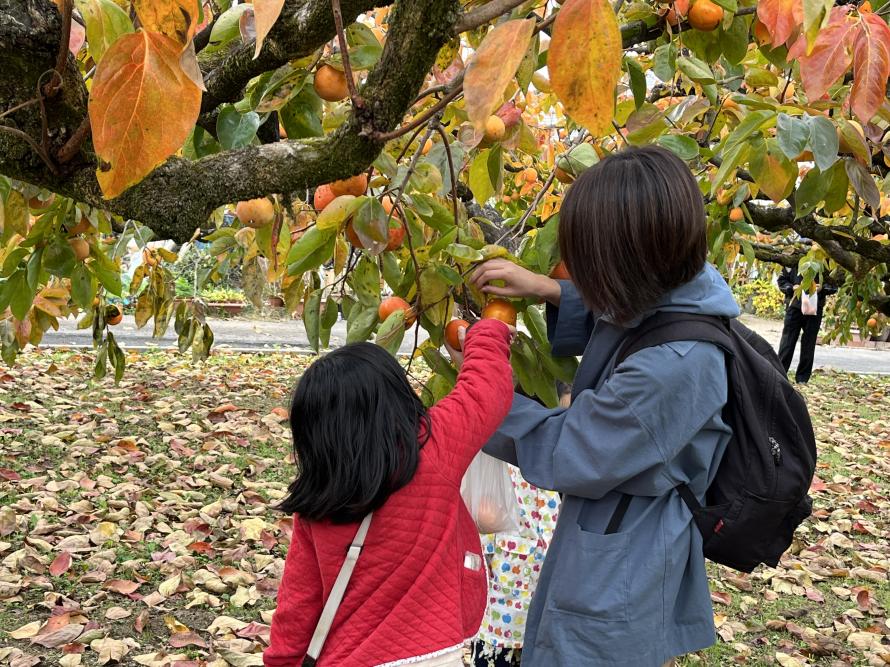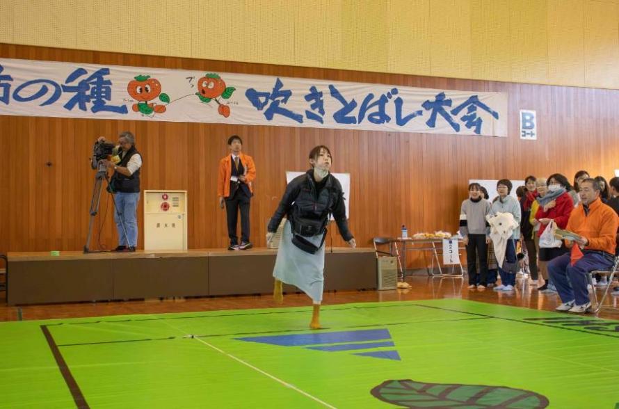 <柿の種吹き飛ばし大会出場!&柿の収穫体験>